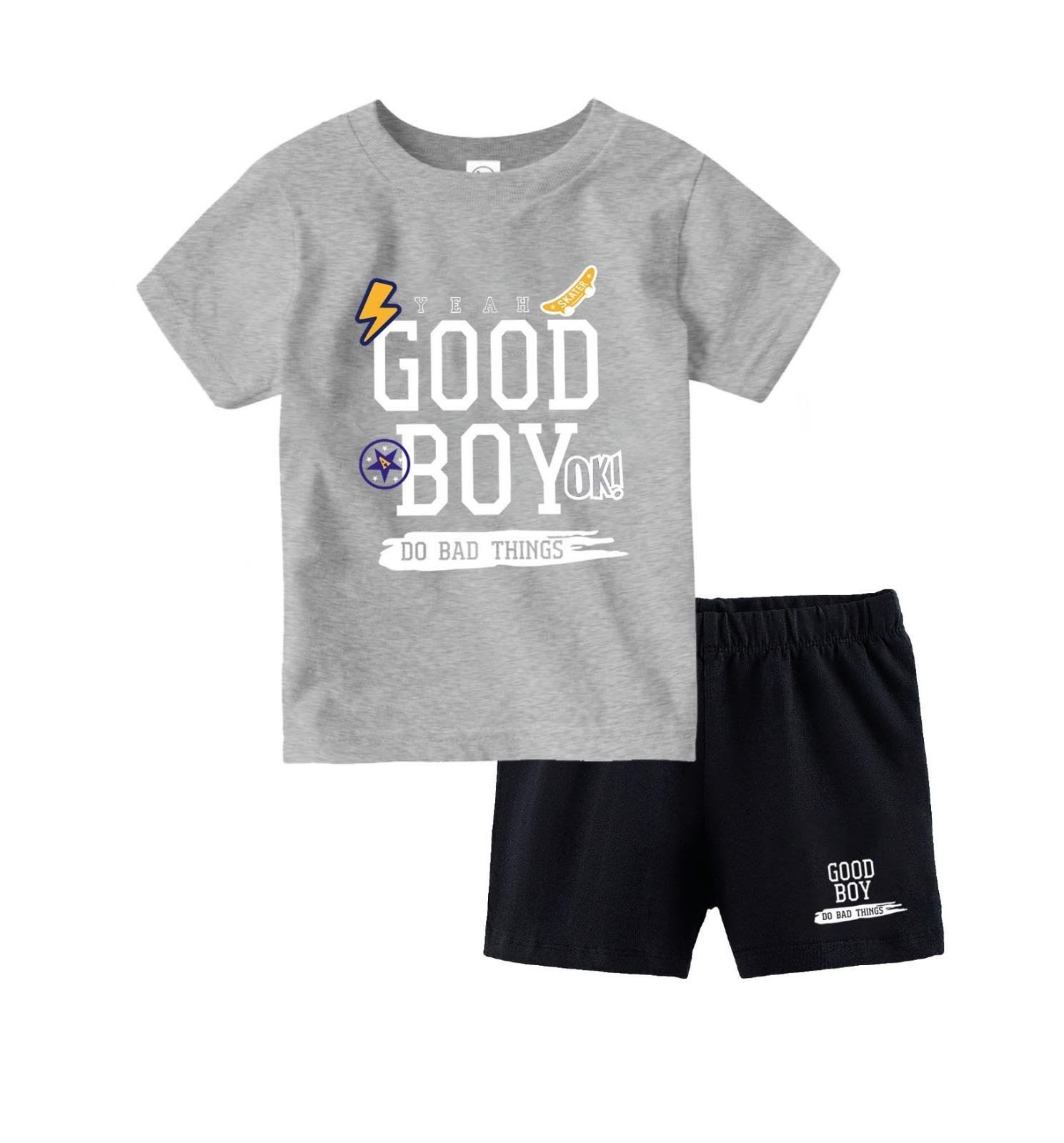 BOYS PRINTED GREY  TOP AND BOTTOM SET