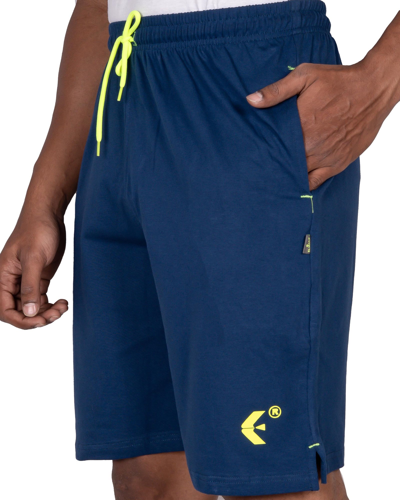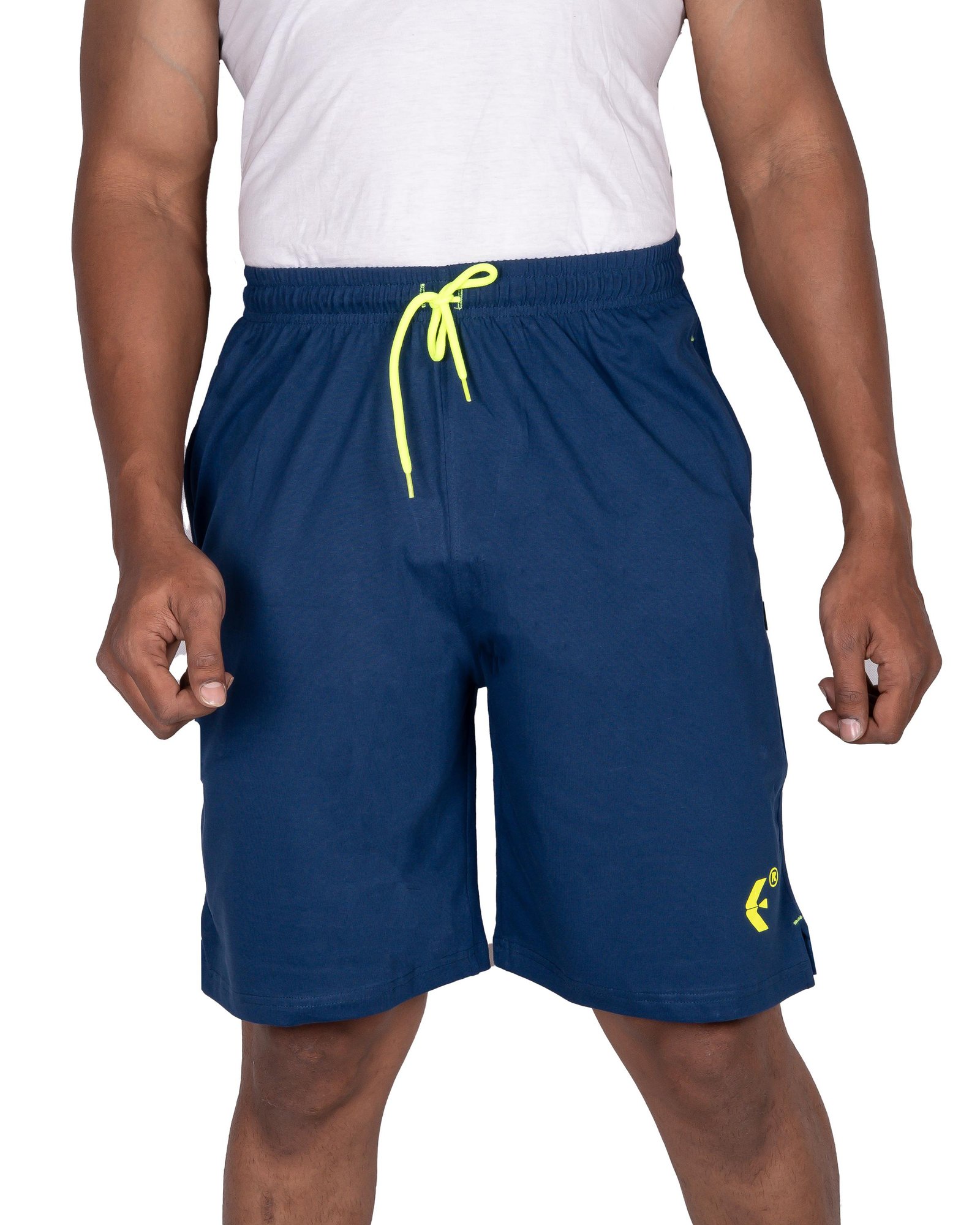 These men’s navy blue athletic shorts are designed for serious comfort and clean performance style. The deep navy shade offers a sharp, versatile look, while the neon drawstring adds a bold athletic contrast. Built with a regular fit, they provide freedom of movement without excess bulk. The elastic waistband ensures a secure, adjustable fit for workouts, running, or everyday wear. Crafted from lightweight, breathable fabric, these shorts help maintain comfort during intense training sessions or casual activities. Functional side pockets add practicality, and the subtle logo detailing keeps the design minimal. Durable and flexible, they’re built for active, confident lifestyles.