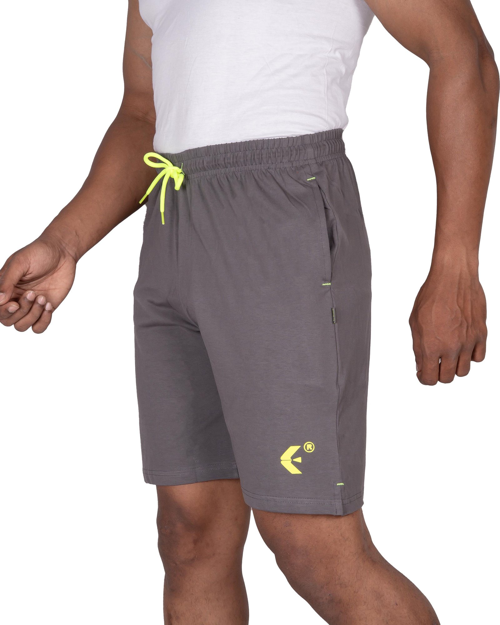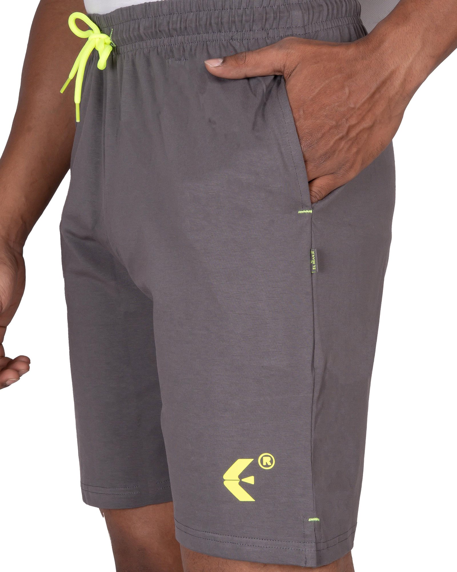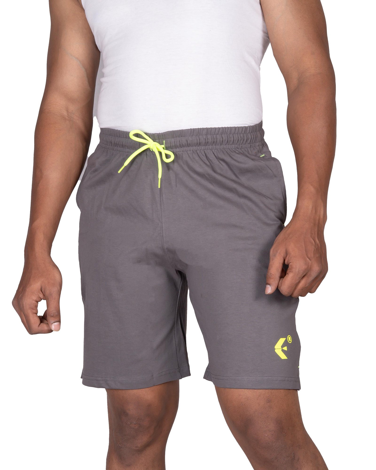 These men’s charcoal grey athletic shorts are designed for performance and everyday comfort. The neutral grey tone delivers a clean, versatile look, while the neon drawstring adds a sharp sporty contrast. Built with a regular fit, they allow natural movement without looking oversized. The elastic waistband ensures a secure, adjustable fit for workouts or casual wear. Made from lightweight, breathable fabric, these shorts help maintain comfort during training, running, or daily activities. Functional side pockets add practicality, and the subtle logo detail keeps the design minimal. Durable, flexible, and easy to style, these shorts are made for active lifestyles.