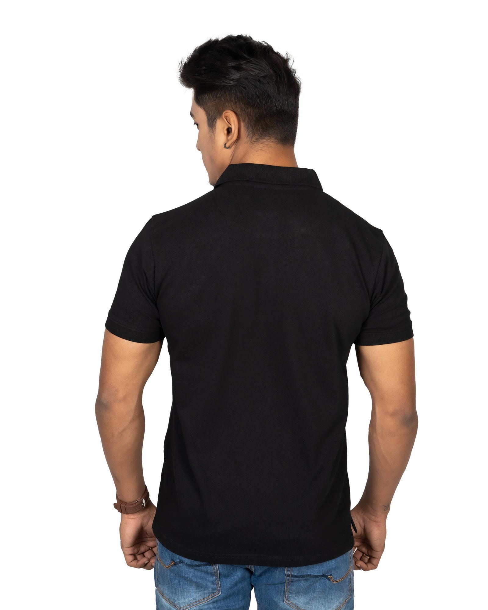 Refresh your everyday look with this men’s solid black polo T-shirt designed for smart casual style. Made from soft, breathable fabric, it ensures superior comfort and ventilation throughout the day. The classic collar with button placket adds a neat and polished appearance, perfect for office casual wear, outings, or weekend activities. Its lightweight material keeps you cool, while durable stitching maintains long-lasting shape and quality after multiple washes. Easy to pair with jeans, chinos, or shorts, this versatile polo offers a clean and confident look. A perfect combination of comfort, elegance, and modern style for every occasion.