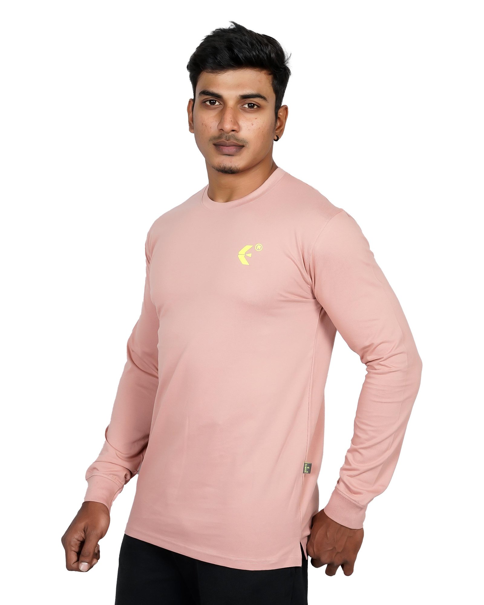 This men’s dusty pink full sleeve t-shirt brings a sharp, modern edge to everyday casual wear. Designed with a slim-fit cut, it highlights your physique while maintaining comfort and flexibility. The soft, breathable fabric ensures all-day ease, making it ideal for daily use, travel, or relaxed outings. Featuring a classic crew neck and full-length sleeves with fitted cuffs, it offers a clean and structured finish. The subtle chest logo adds a minimal branded touch without overpowering the design. Easy to pair with jeans or joggers, this versatile piece delivers durability, comfort, and confident style in one refined essential.